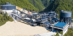 石頭原料使用振動給料機設備輸送至破碎機進行破碎處理,大型破碎機設備可以將大塊的石頭破碎成較小的物料,破碎后的石料再經過振動篩進行篩分選級,篩選出符合規格尺寸的石料,由成品輸送帶送至成品料區,不符合規格的石料由返料皮帶返回至破碎機再次進行破碎。根據生產需求破碎篩分后的一部分石料需要進行制砂處理,使用制砂機設備將物料進行細碎、整形破碎,加工成符合規格的砂子料。一般產線為提高砂料的品質,還會配置洗砂機對砂子進行清洗,提高其質量,然后由成品輸送帶送至成品料倉。
